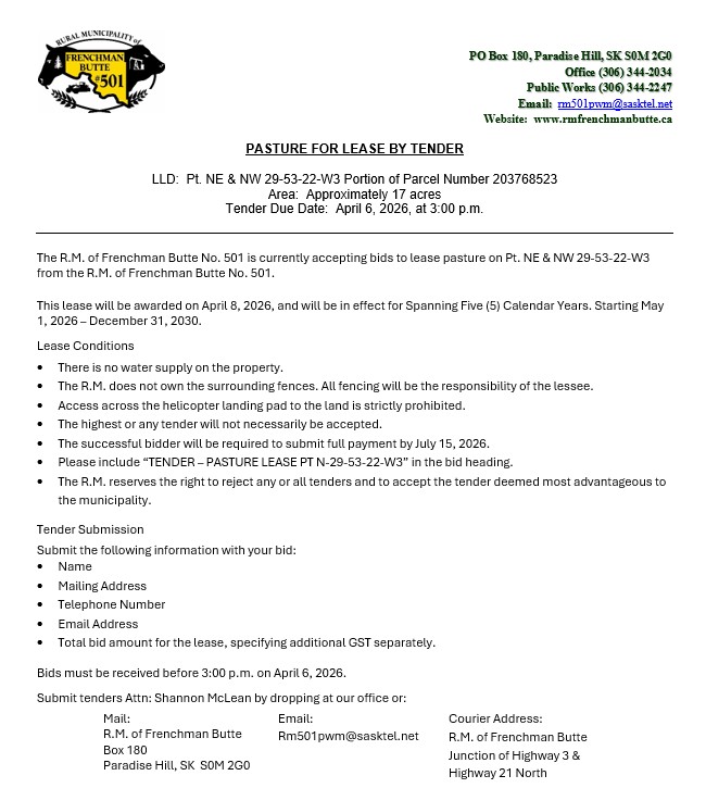 Lease Land Tender St. Walburg Scale